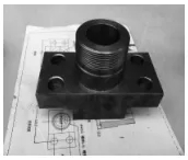 通过在失效的球阀注脂嘴四周表面固定T101b带压更换成套工具,实现注脂嘴的带压拆卸和更换工作。为保证施工过程中的密封效果,需提前加工护板短节和抱箍,并准备高压O型密封圈,还需加工护板短节和抱箍结构(如下页图10、11)。护板短接及底部的O型圈、球阀表面和2英寸阀门在抱箍的作用下,使注脂嘴四周形成一个密封腔 。带压更换成套工具装配后如图12所示。